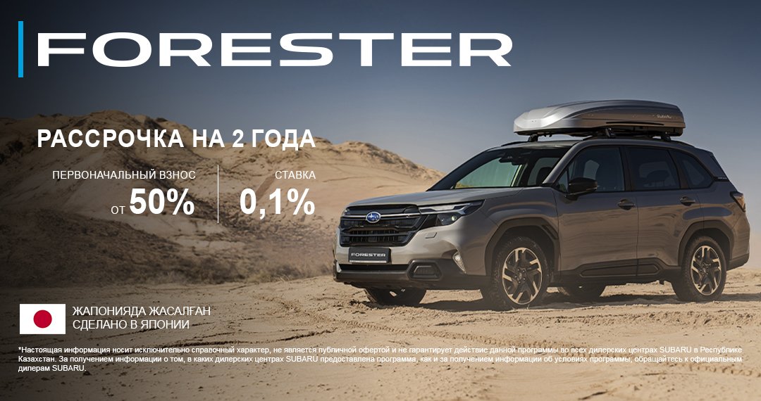 *Настоящая информация носит исключительно справочный характер, не является публичной офертой и не гарантирует действие данной программы во всех дилерских центрах SUBARU в Республике Казахстан.